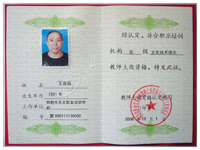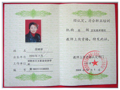 教師上崗資格證書