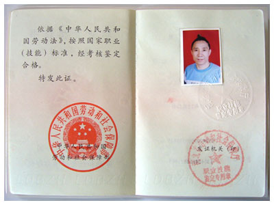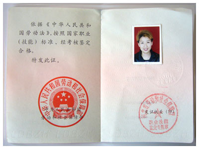 中國勞動和社會保障部頒布技能合格證書