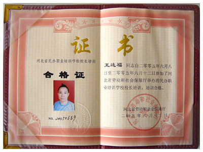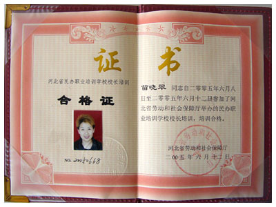職業(yè)培訓學校培訓合格證書